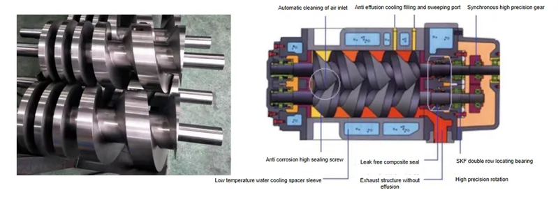 Un núMero de sellar las cavidades estáN formados entre los dos rotores y el cuerpo de la bomba.Cuando los rotores giran de forma sincróNica y inversamente en el shell de la bomba a travéS de la misma marcha, el gas en cada sala de la junta es empujado desde el extremo de la entrada en el lado del escape, que produce la aspiracióN y de escape de funciones.