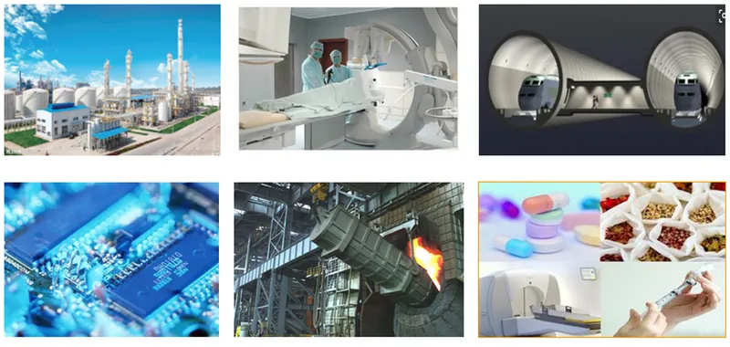 Es ampliamente utilizado en quíMica, electróNica, biofarmacéUtica, fotovoltaica, la comida, fundicióN y túNel de vacíO de la industria de tecnologíA futurista.